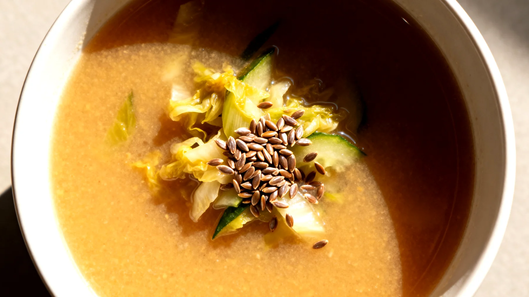 Die Enzyme aus dem fermentierten Soja helfen zudem bei der Aufspaltung komplexer Proteine und Kohlenhydrate, was die Nährstoffaufnahme verbessert. Gleichzeitig wirken die Omega-3-Fettsäuren entzündungsmodulierend und können bei gereiztem Darm beruhigend wirken. Dieses Zusammenspiel macht die Suppe zu mehr als der Summe ihrer Einzelteile.