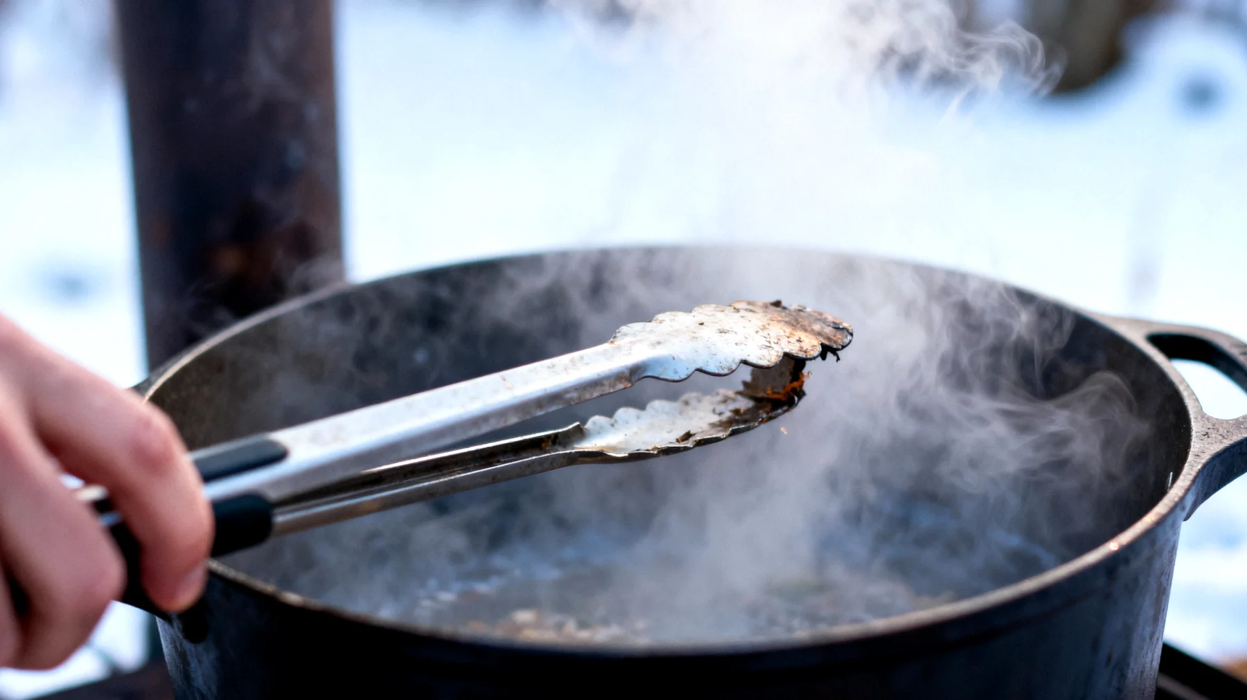 Die wichtigste Regel jedoch lautet: Metall darf nicht direkt aus der Kälte in extreme Hitze überführt werden. Wer die Zange aus der kalten Schublade nimmt und sofort in die 180 Grad heiße Pfanne taucht, setzt das Material einer enormen thermischen Spannungsbelastung aus. Ein einfacher Schritt reduziert dieses Risiko drastisch: Die Zange eine Minute auf der Arbeitsplatte liegen lassen, bevor sie zum Einsatz kommt. Diese kurze Anpassungsphase genügt, um die schlimmsten Temperaturschocks zu vermeiden.